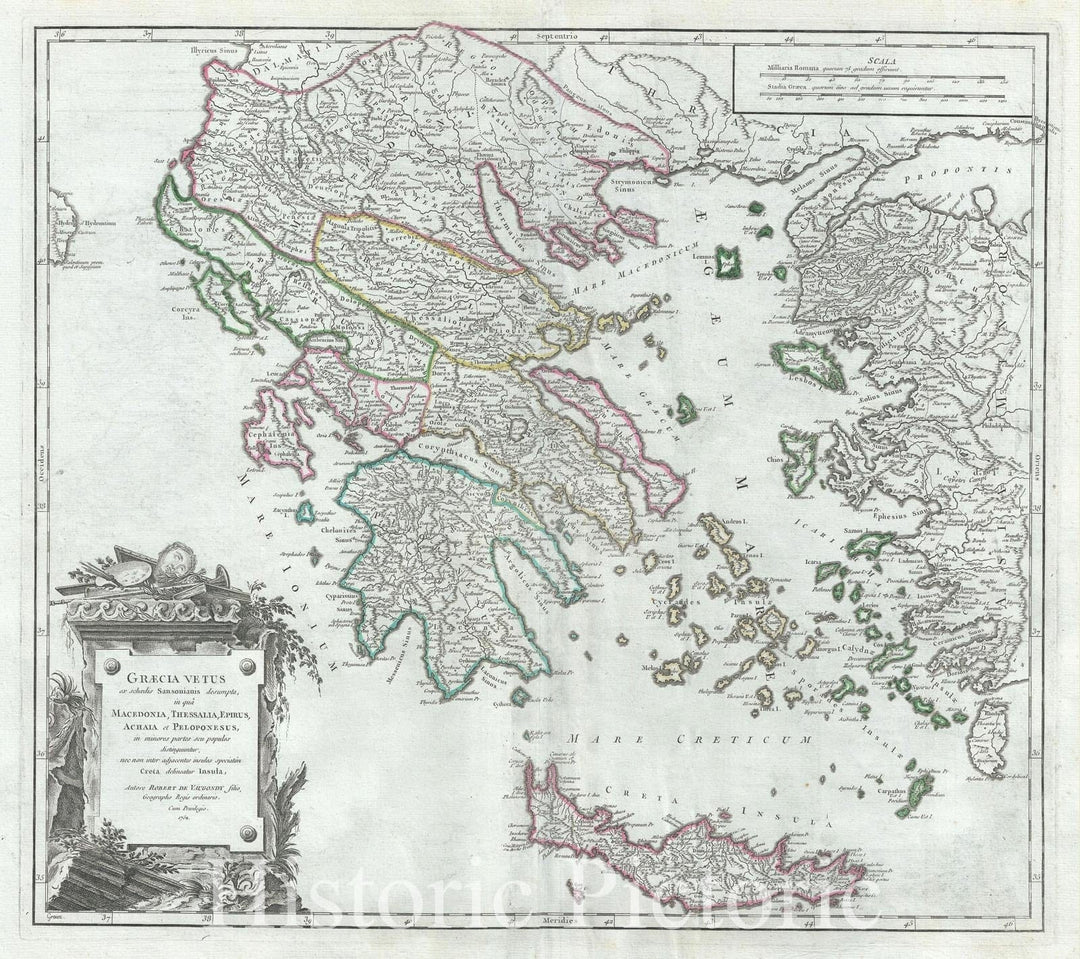Historic Map : Greece and The Balkans in Antiquity, Vaugondy, 1752, Vintage Wall Art