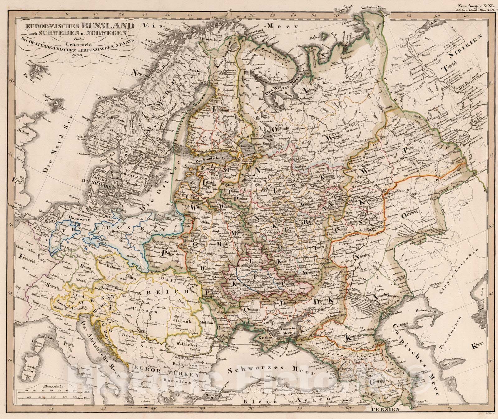 Historic Map : Russian Federation; Ukraine; Poland; Austria, Baltic Countries 1833 Europaeisches (Baltic Countries and Russia). , Vintage Wall Art
