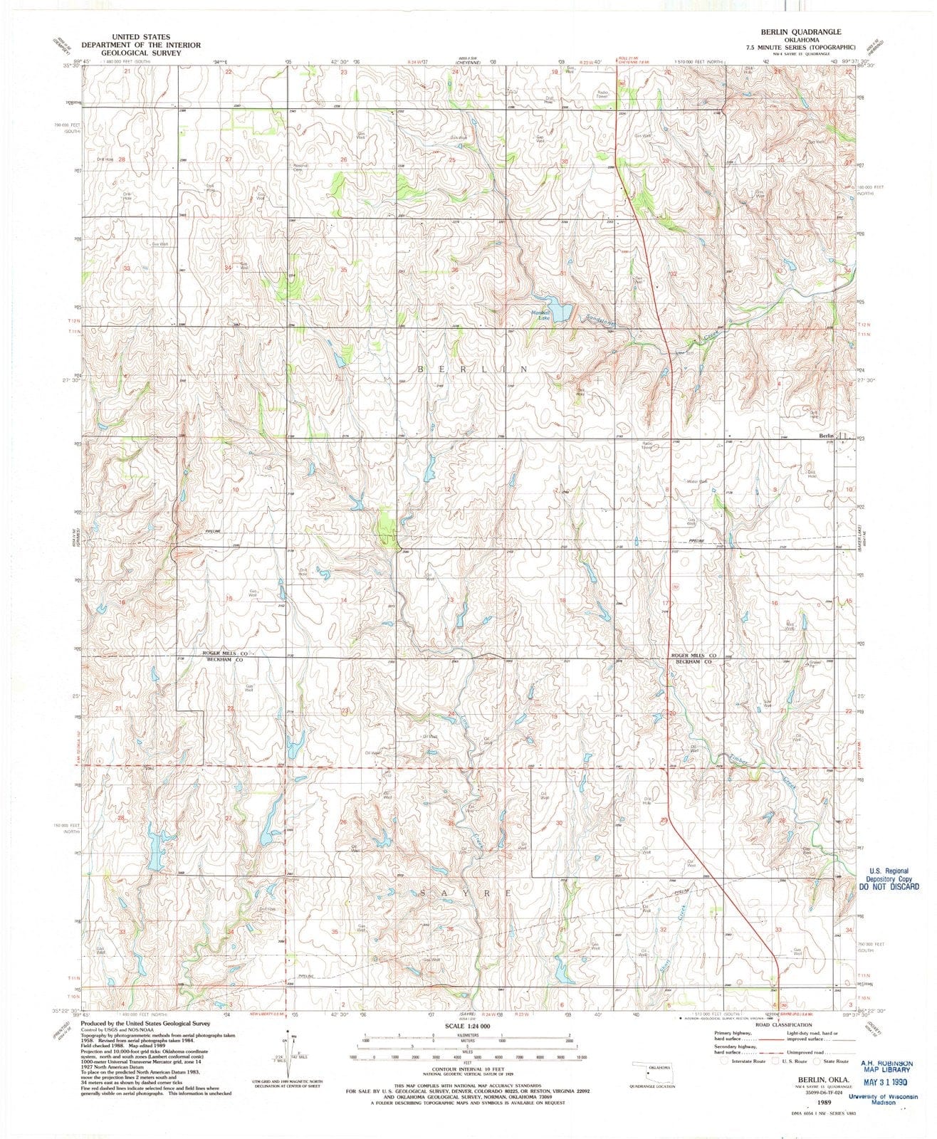 1989 Berlin, OK - Oklahoma - USGS Topographic Map