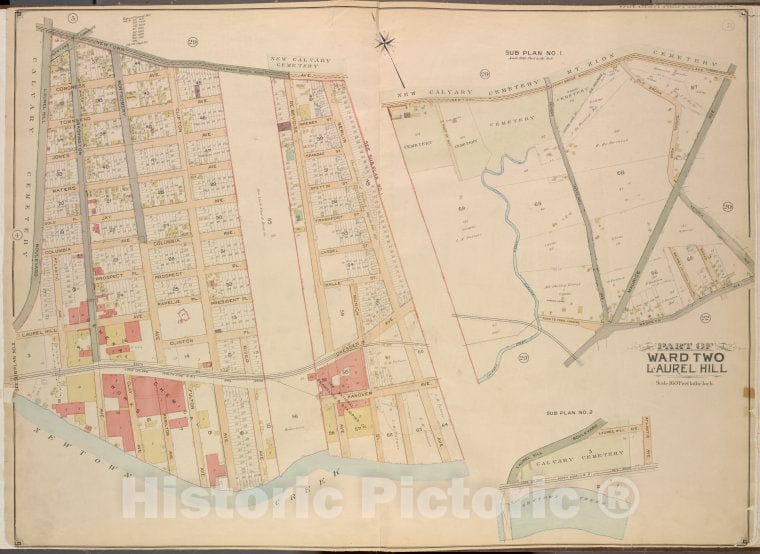 • Historic Map - 1903 Queens County, New York (N.Y.) Queens, Laurel Hill; Newtown, Berlin, Newtown Creek; Laurel Hill, Laurel Hill ; Sub Plan No. 1; Newtown - Vintage Wall Art