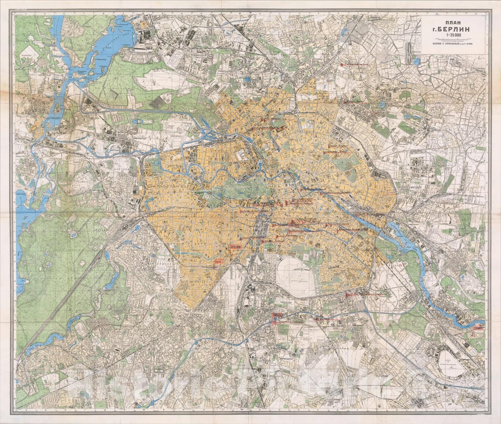 Historic Map : [Fall of Berlin - Soviet Takeover] ???? ?. ?????? 1:25000, 1945, Soviet Office of Military Topographers, Vintage Wall Art