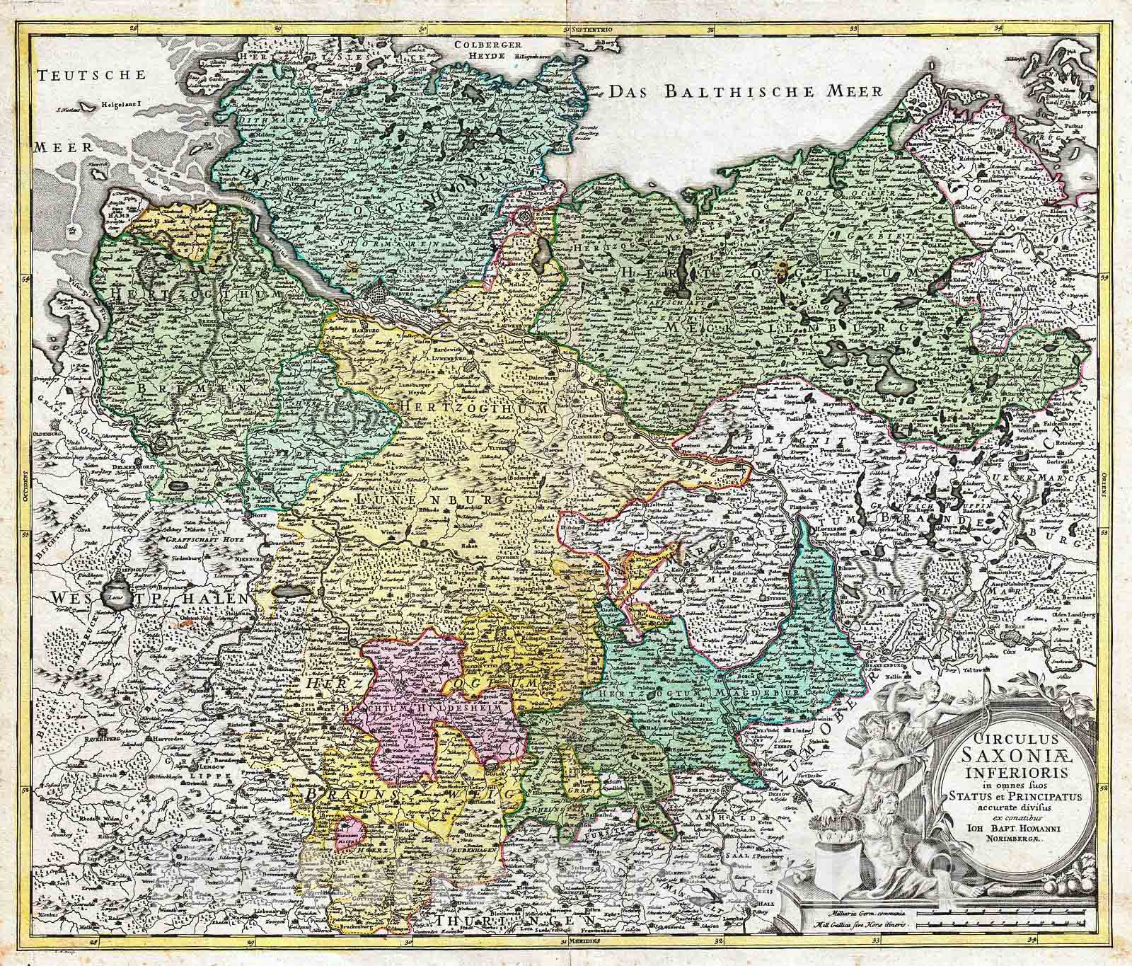 Historic Map : Homann Map of Lower Saxond (Berlin Lubeck, Hamburg, Bremen) , 1730, Vintage Wall Art