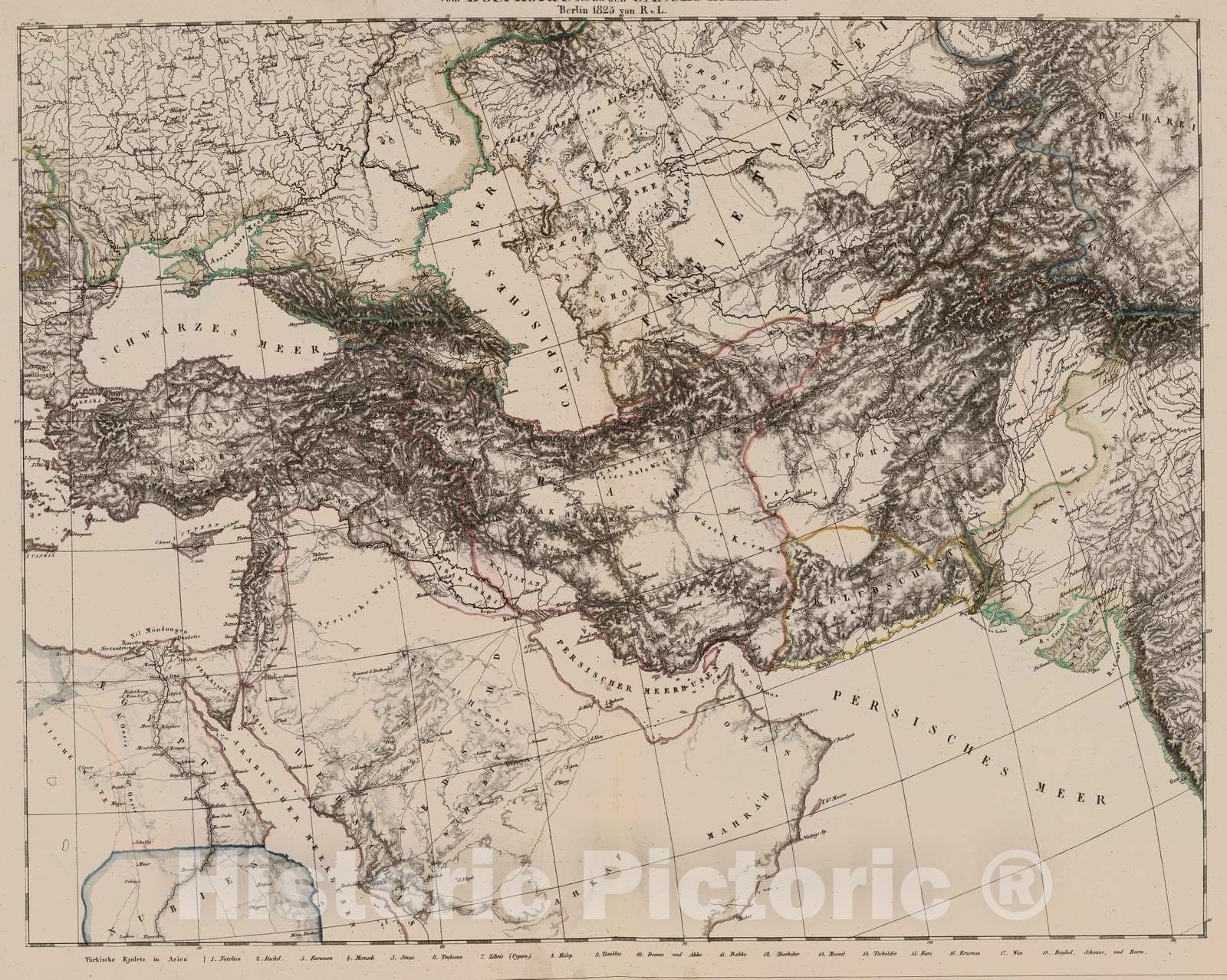 Historic Map : Saudi Arabia; Iraq; Iran; Afghanistan, Middle East 1825 Vom Bosphorus bis zu den Gangesquellen. Berlin 1925. von R.v.L. , Vintage Wall Art
