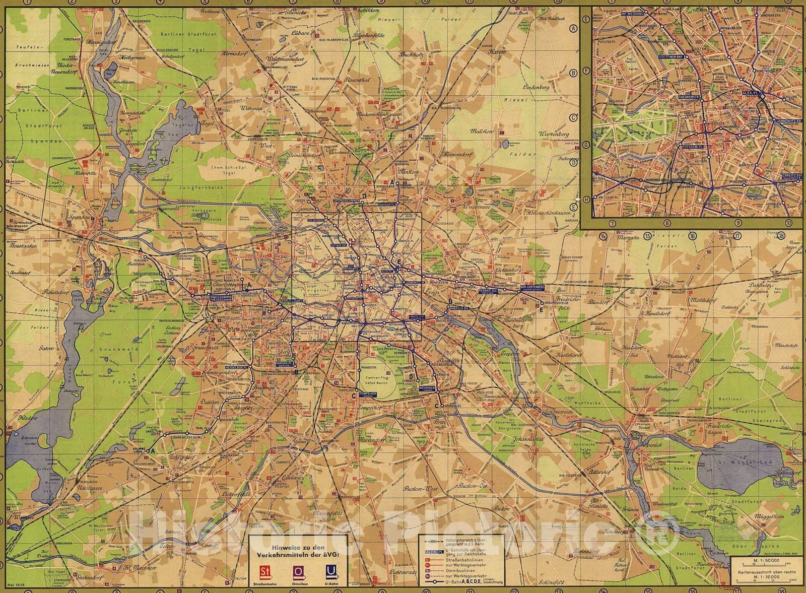 Historic Map : Europe, Berlin Transit Map 1938 Railroad Catography , Vintage Wall Art