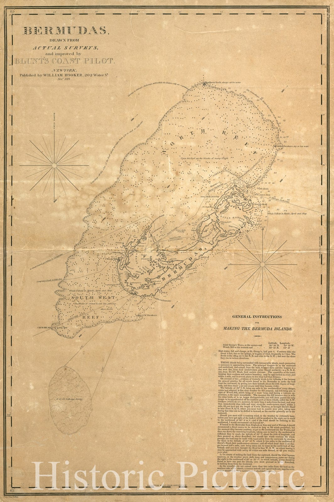 Historic 1819 Map - Bermudas, Drawn from Actual surveys, and Improved by Blunt's Coast Pilot.