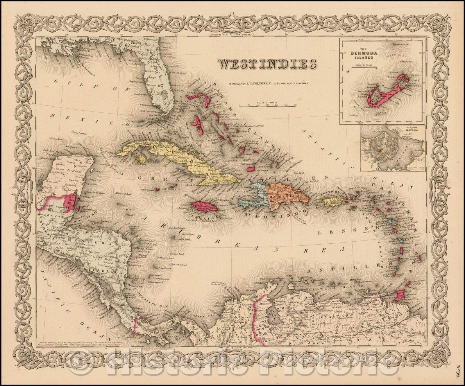 Historic Map - West Indies Bermuda and Havana insets, 1855, Joseph Hutchins Colton v2