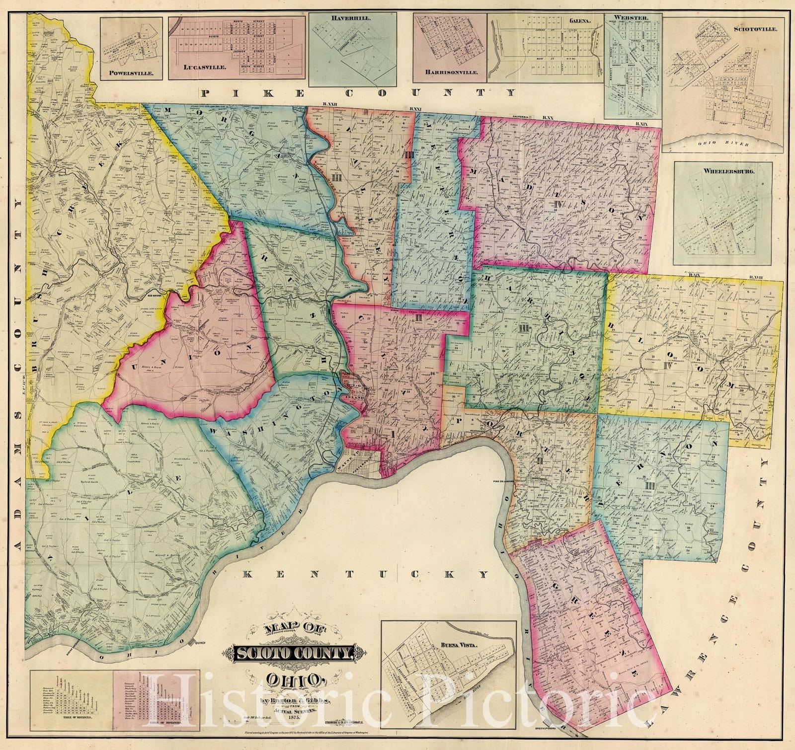Historic 1875 Map - Map of Scioto County, Ohio