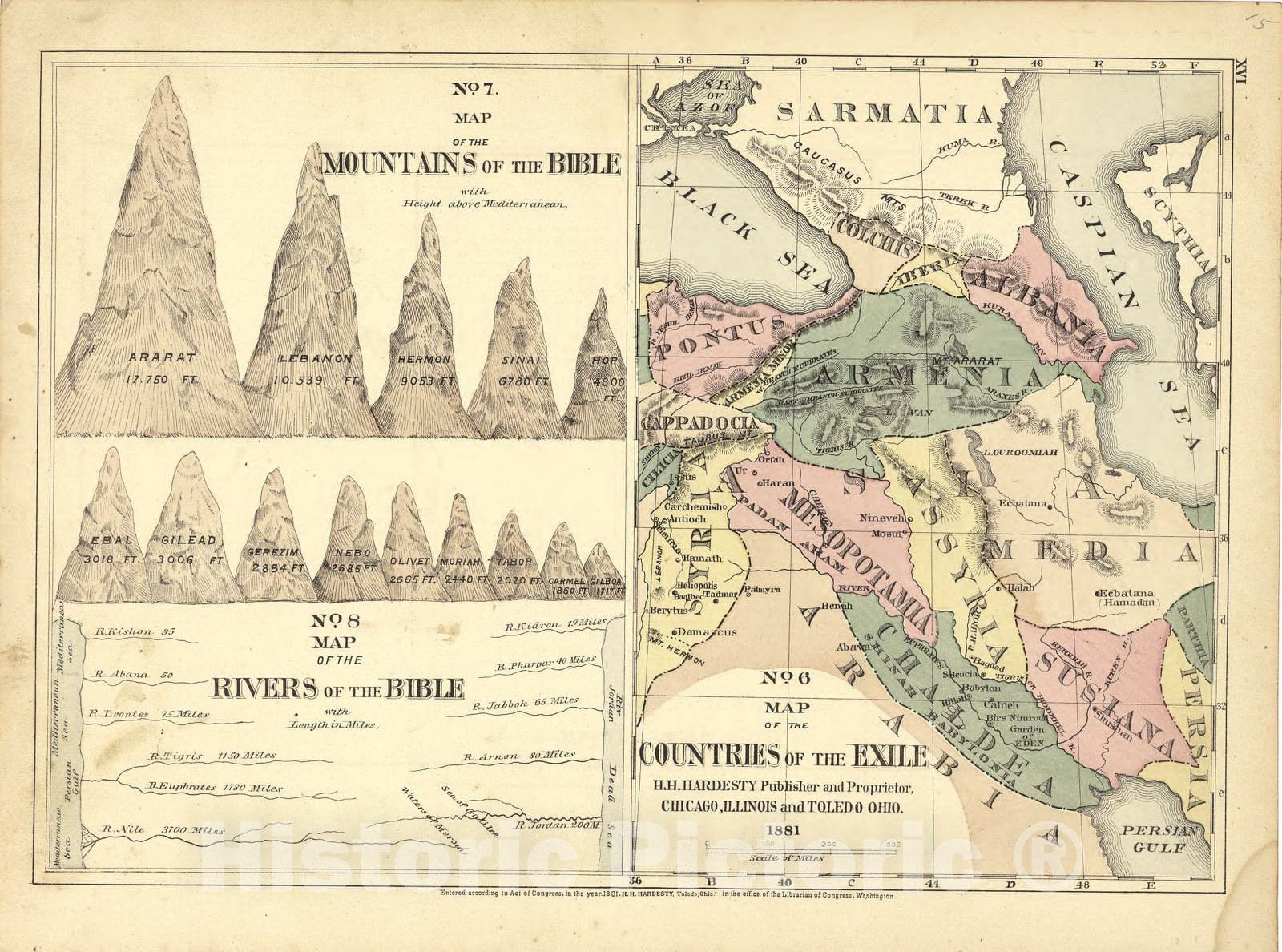 • .Historic 1881 Map - Historical Hand-Atlas, Illustrated - No. 6 Countries of The Exile, No. 7 Mountains of The Exile, No. 8 Rivers - Historical Hand Atlas, Illustrated, General & Local