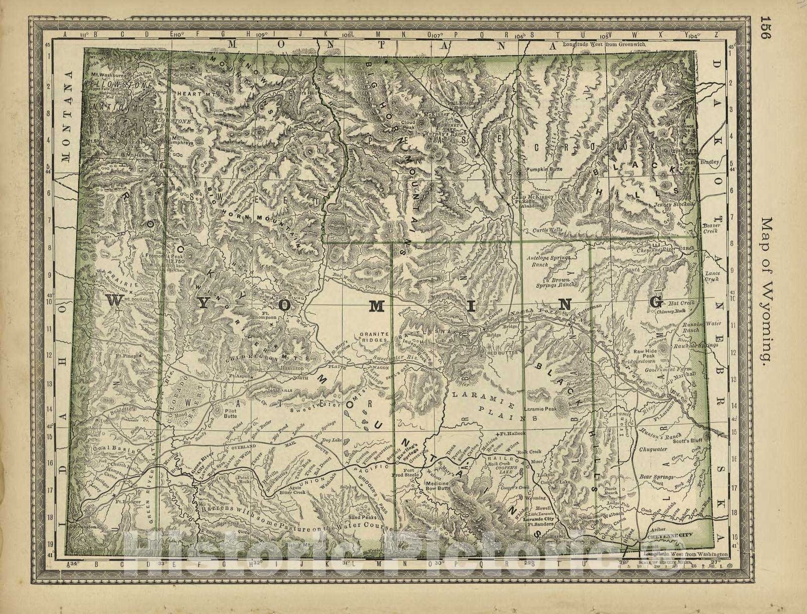 Historic 1882 Map - Historical Hand-Atlas, Illustrated - Map of Wyoming - Historical Hand Atlas, Illustrated, General & Local