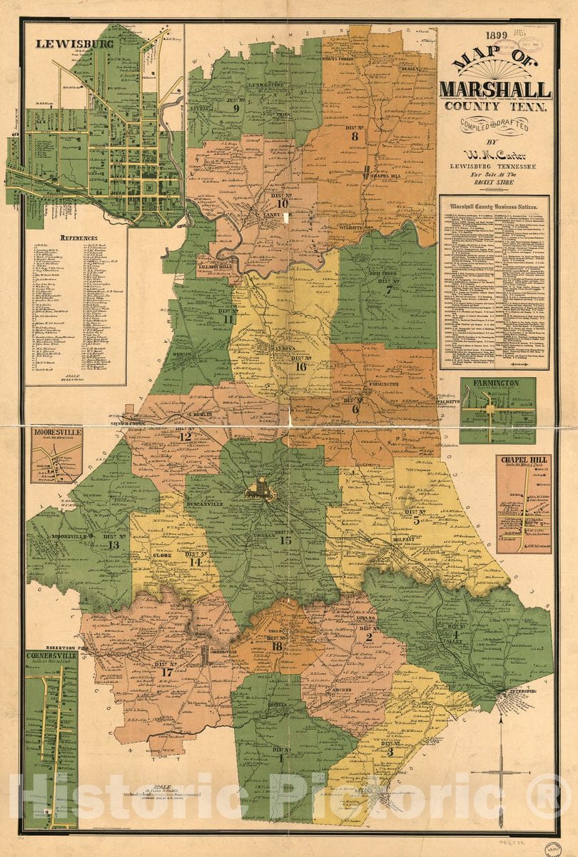 Historic 1899 Map - Map of Marshall County, Tenn.