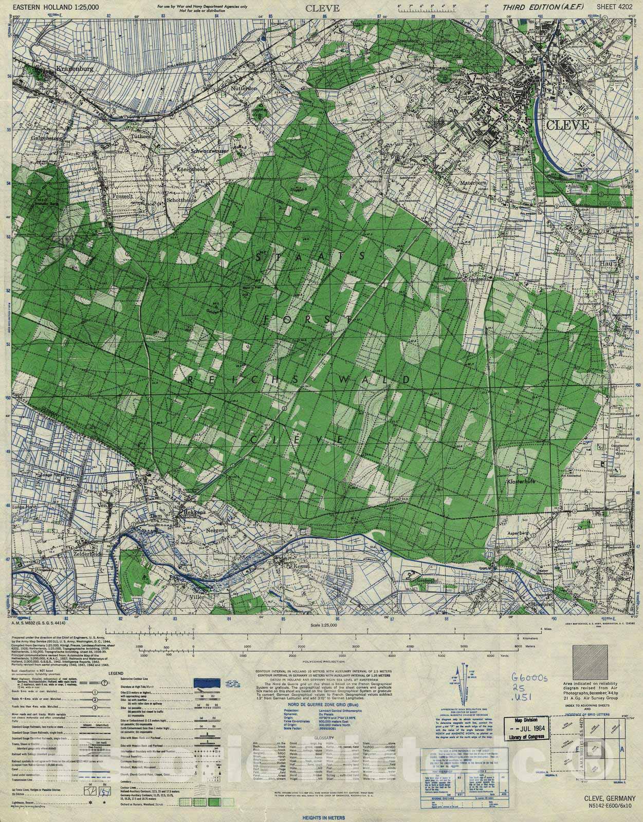 Historic 1944 Map - Eastern Holland 1:25,000 - Cleve, Germany (Eastern Holland) - A.M.S. M832