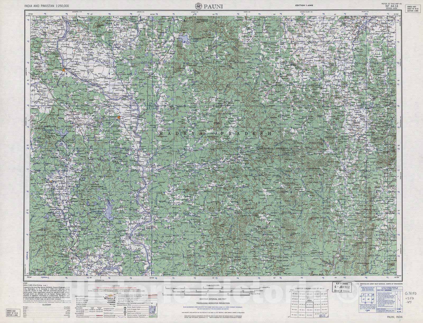 Historic 1955 Map - India and Pakistan 1:250,000. - Pauni, 1962