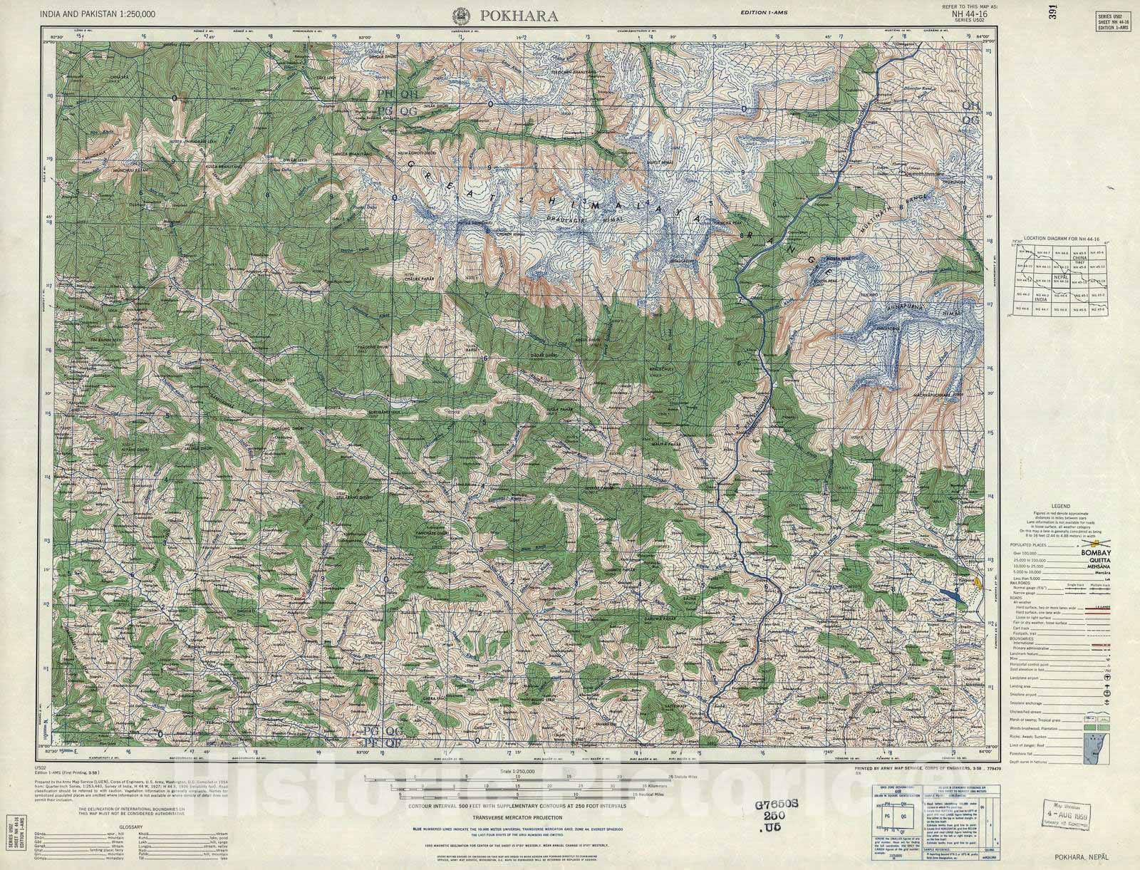 Historic 1955 Map - India and Pakistan 1:250,000. - Pokhara, Nepal 1958