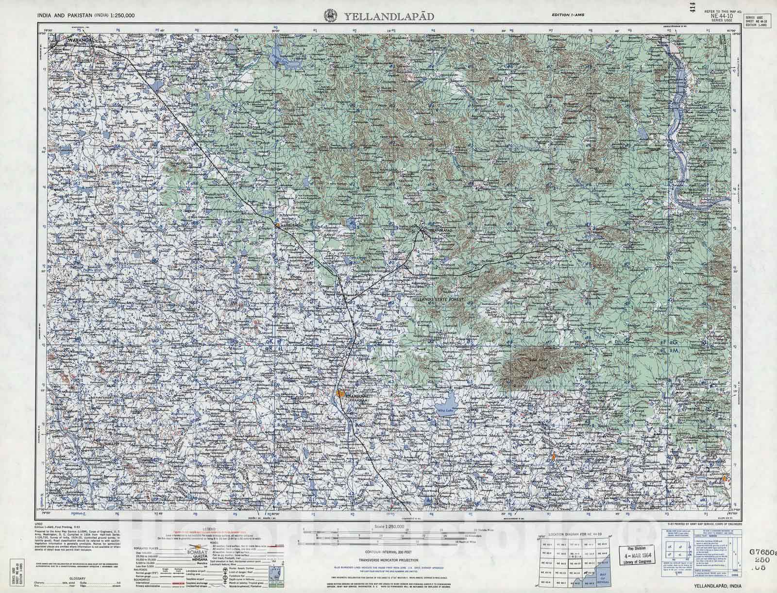 Historic 1955 Map - India and Pakistan 1:250,000. - Yellandlapad, 1963