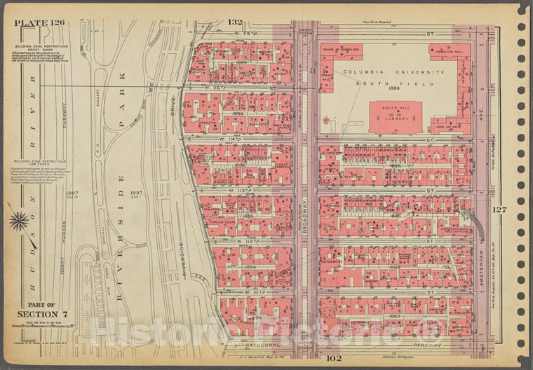 Historic 1955 Map - Plate 126, Part Of Section 7: [Bounded By W. 116Th Street, Amste