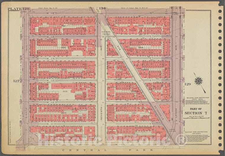 Historic 1955 Map - Plate 128, Part Of Section 7: [Bounded By W. 116Th Street, Lenox