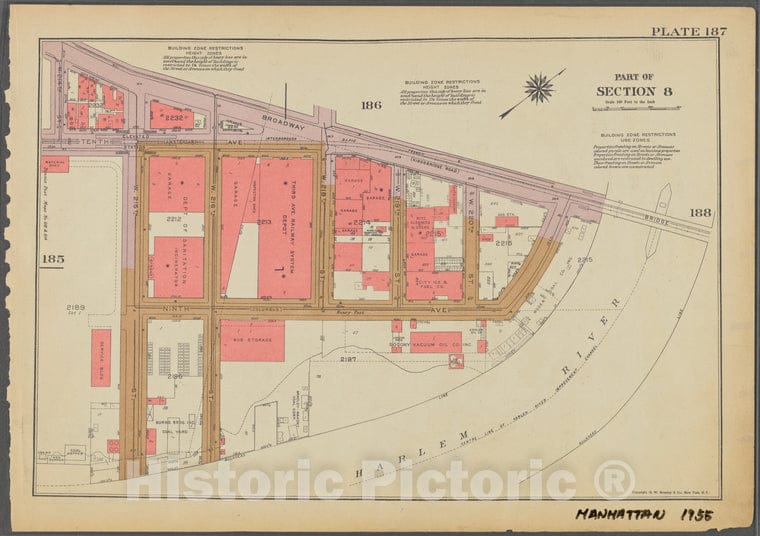 Historic 1955 Map - Plate 187, Part Of Section 8: [Bounded By Broadway, (Harlem Rive
