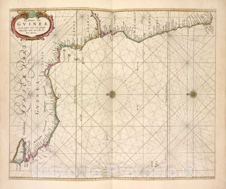 Historic Map - 1672 Pas-Caart Van Gvinea En De Custen Daer Aen Gelegen Van Cabo Verde Tot Cabo De Bona Esperanca. - Vintage Wall Art