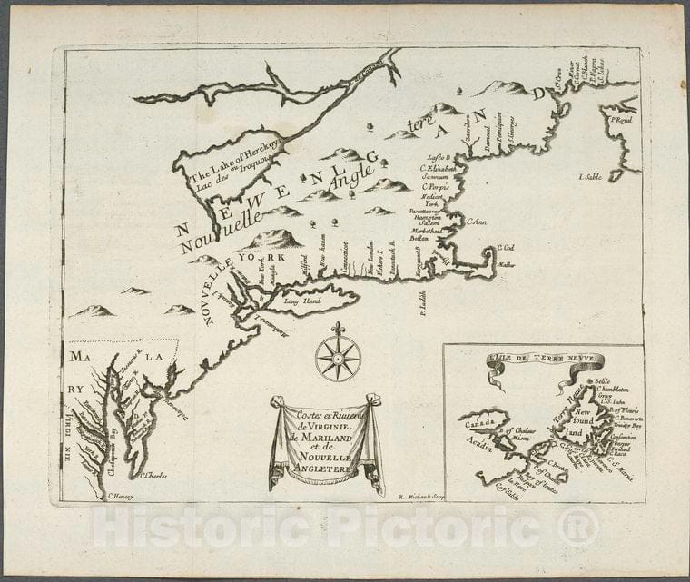 Historic Map - 1674 New England, Costes Et Rivieres De Virginie, De Mariland, Et De Nouvelle Angletere