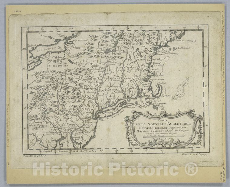 Historic Map - 1757 New England, Carte De La Nouvelle Angleterre, Nouvelle Yorck, Et Pensilvanie : Pour Servira L'Histoire Generale Des Voyages
