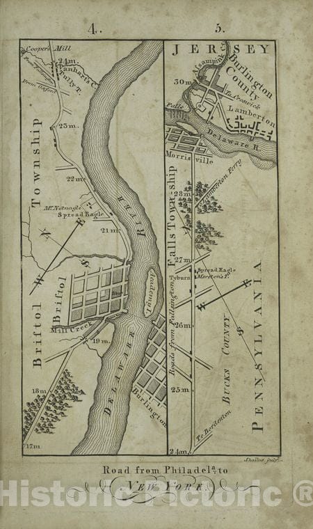 Historic Map - 1802 Philadelphia, Pennsylvania (Pa.), Road From Philadela. To New York, Seg. 4-5.