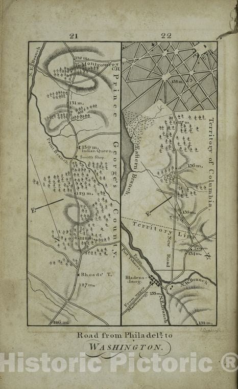 Historic Map - 1802 Philadelphia, Pennsylvania (Pa.), Road From Philadela. To Washington, Seg. 21-22.