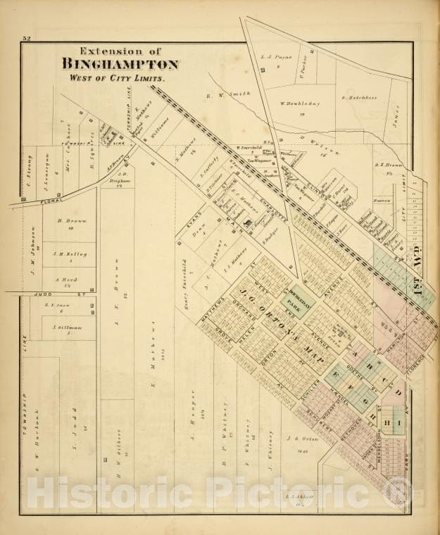 Historic Map - 1876 Broome County, New York (N.Y.), Extention Of Binghamton West Of City Limits.