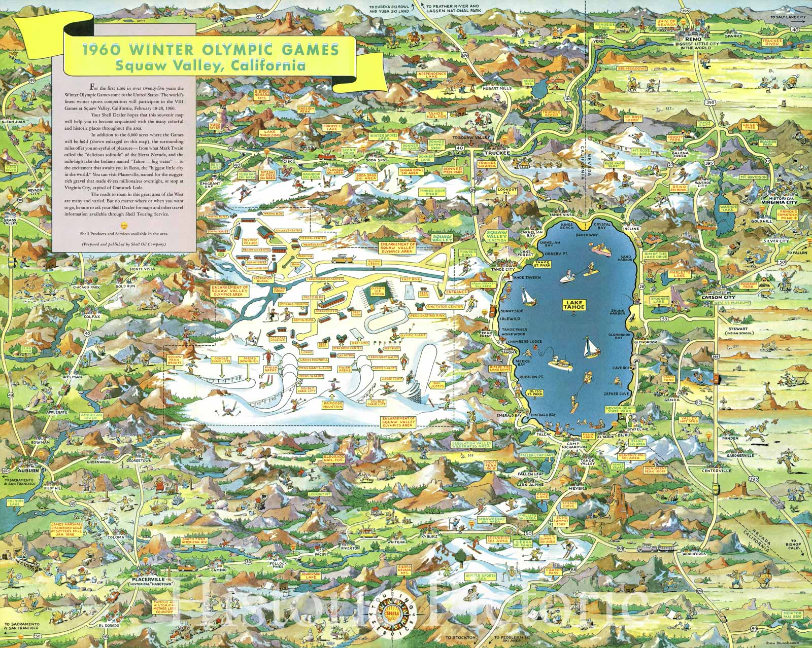 Historic Map : Bloodgood Pictorial Map of The 1960 Olympic Games at Squaw Valley, CA, 1960, Vintage Wall Art