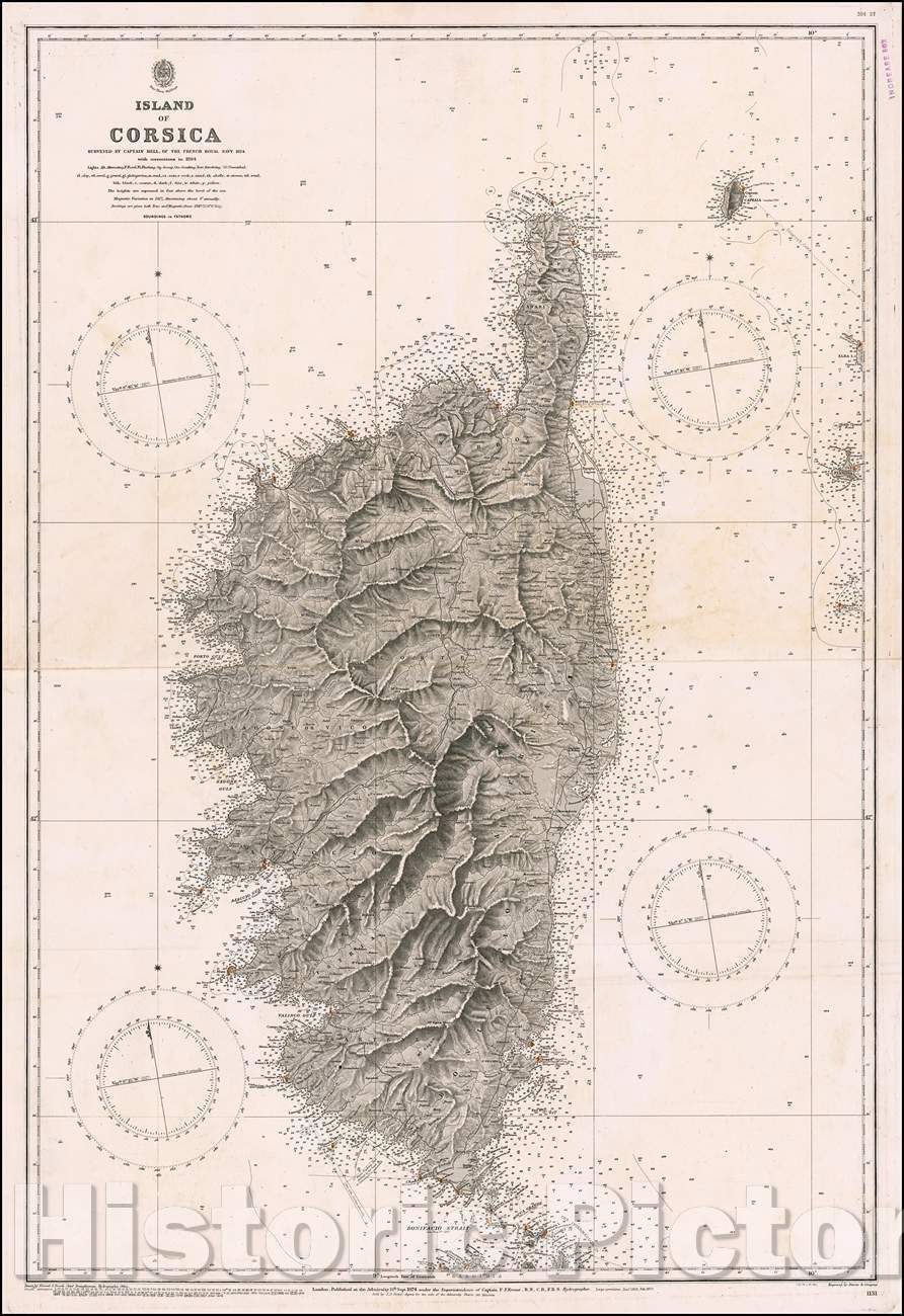 Historic Map - Island of Corsica Surveyed, 1894, British Admiralty - Vintage Wall Art