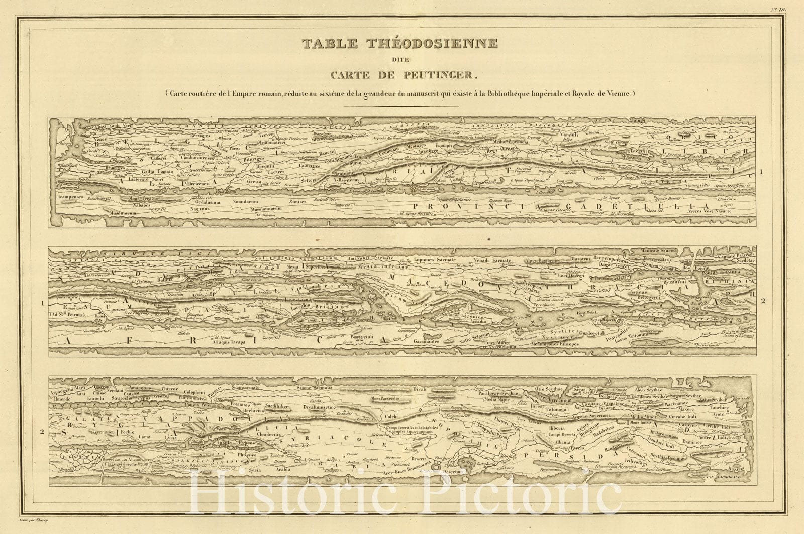 • .Historic Map : Mediterranean 1837 Table Theodosienne Dite Carte de Peutinger. , Vintage Wall Art
