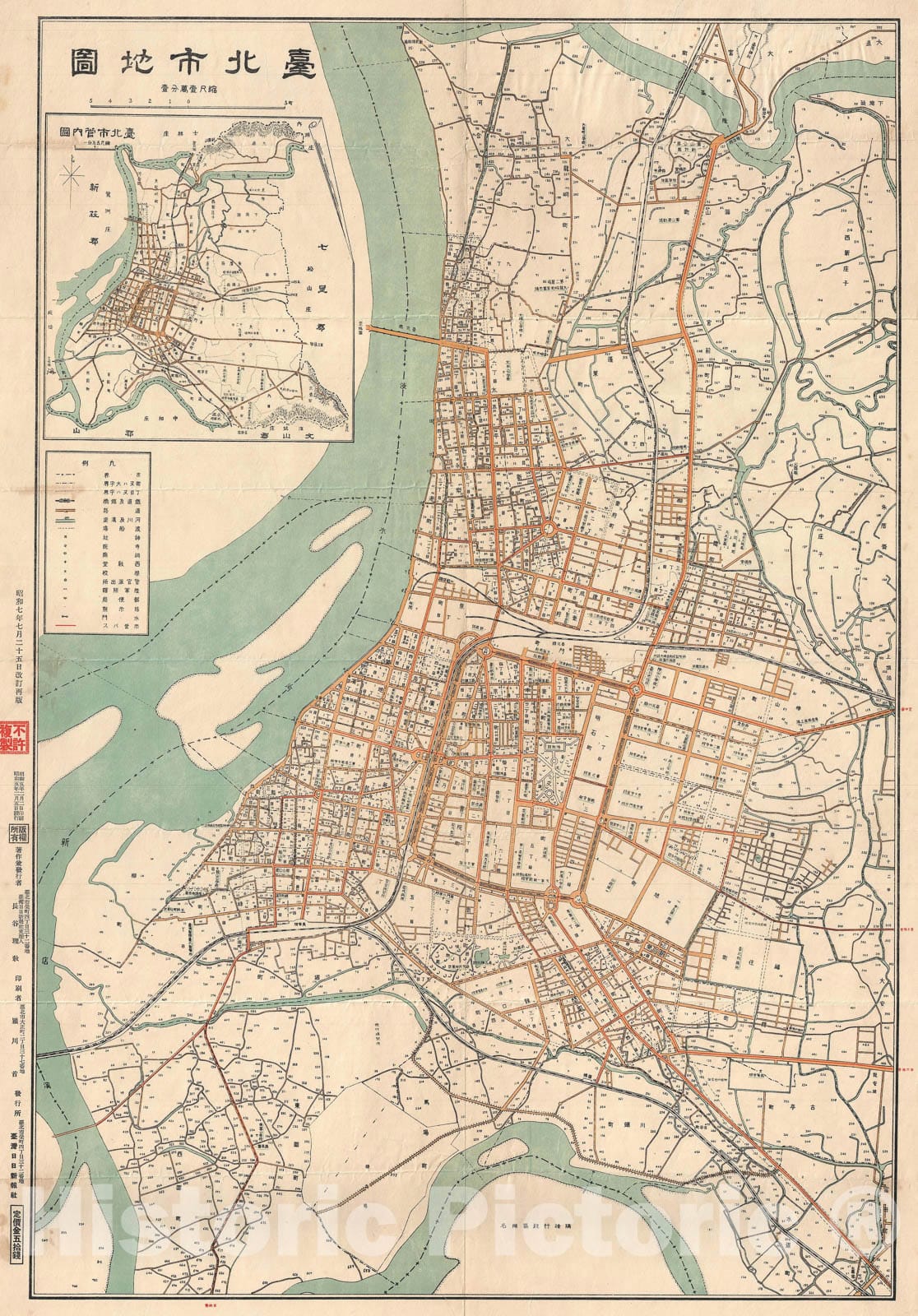 Historic Map : Taiwain Nichi Nichi Shimpo Map of Taipei, Taiwan "Formosa", 1932, Vintage Wall Art