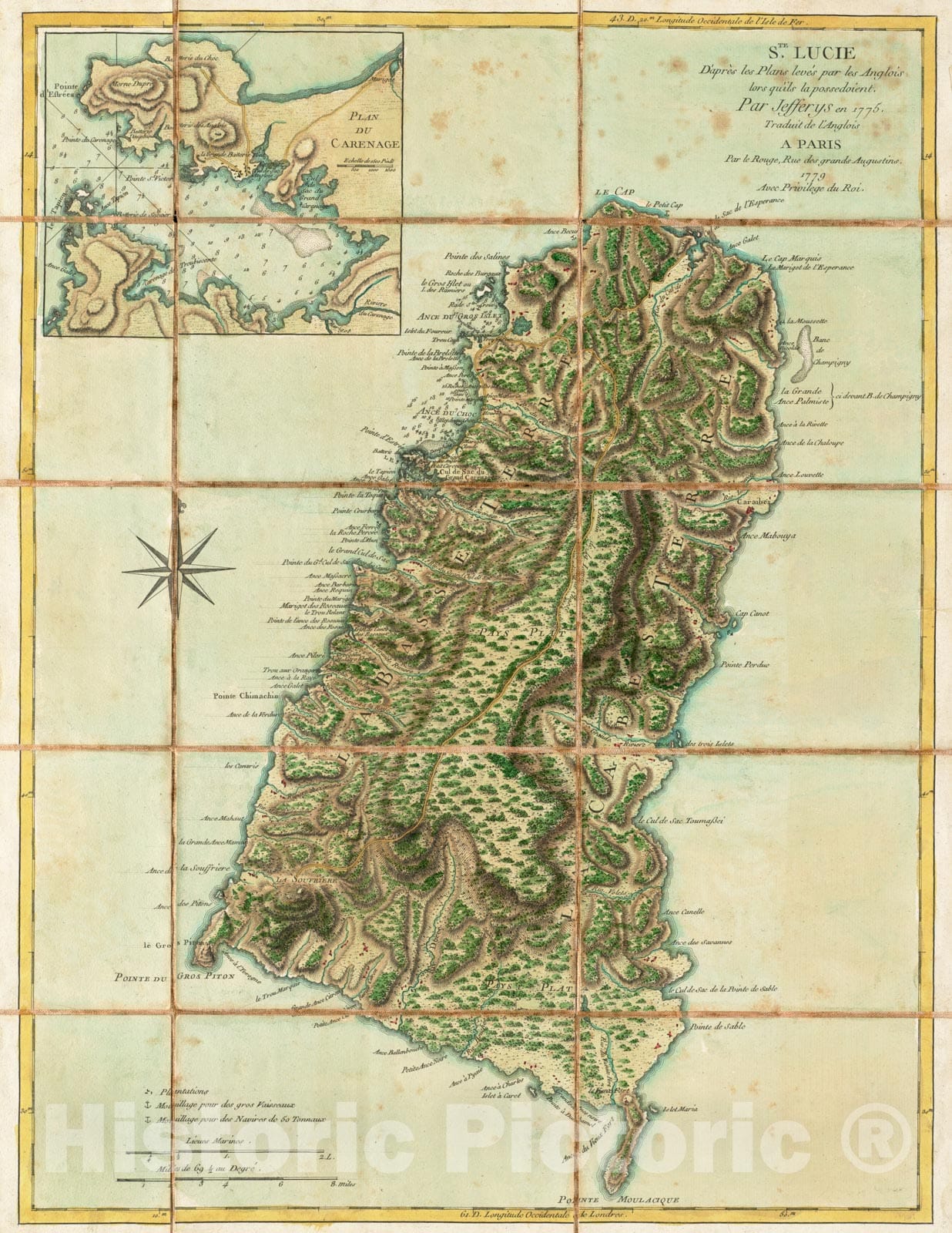 Historical Map, 1779 Ste. Lucie : d'apreI's les Plans leves par les Anglois lors qu'ils le possedoient, Vintage Wall Art