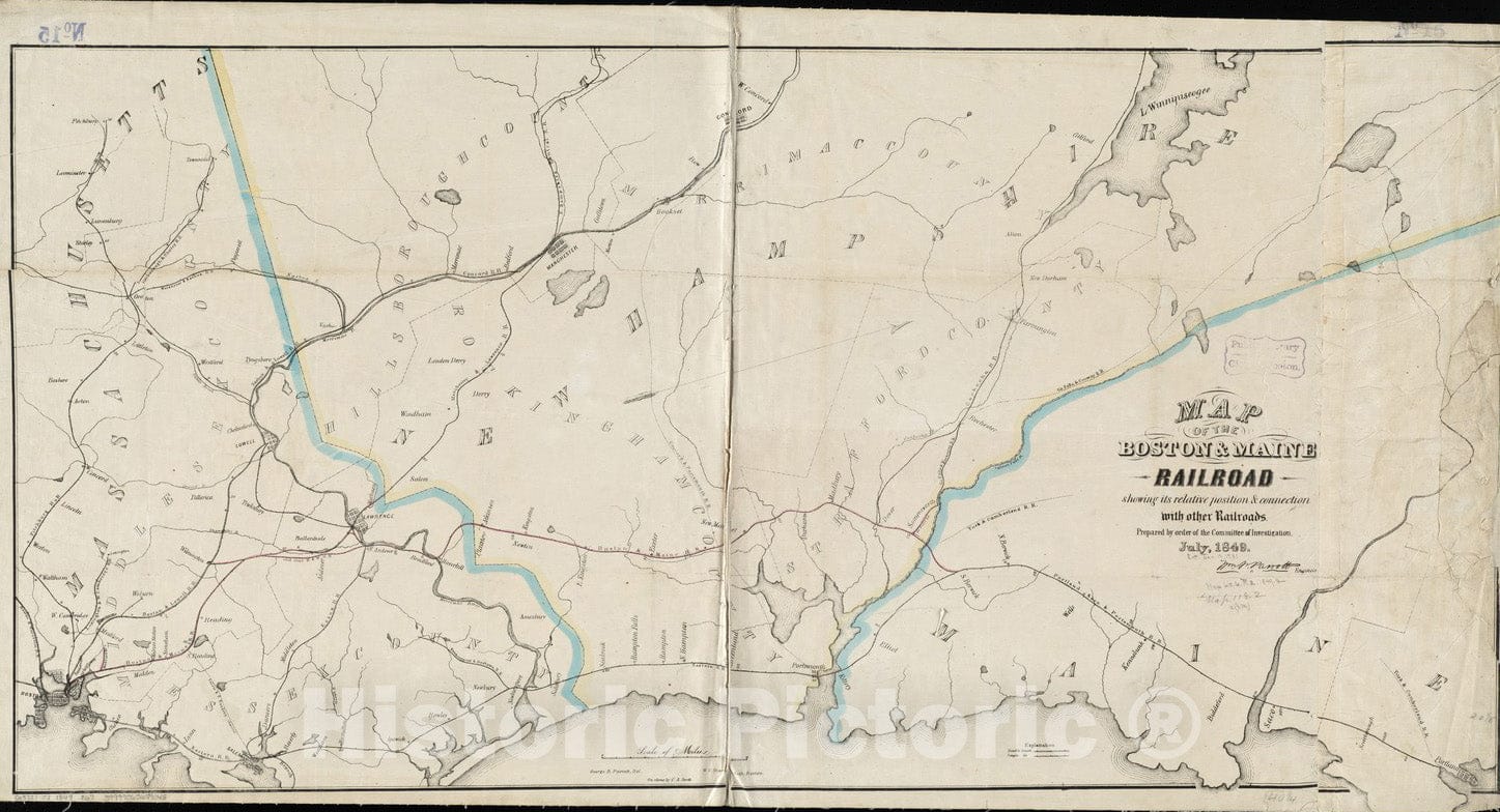Historical Map, 1849 Map of The Boston & Maine Railroad, Showing its Relative Position & Connection with Other Railroads, Vintage Wall Art