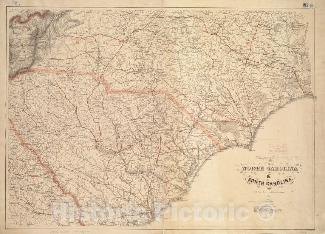 Historical Map, 1865 North Carolina & South Carolina, Vintage Wall Art