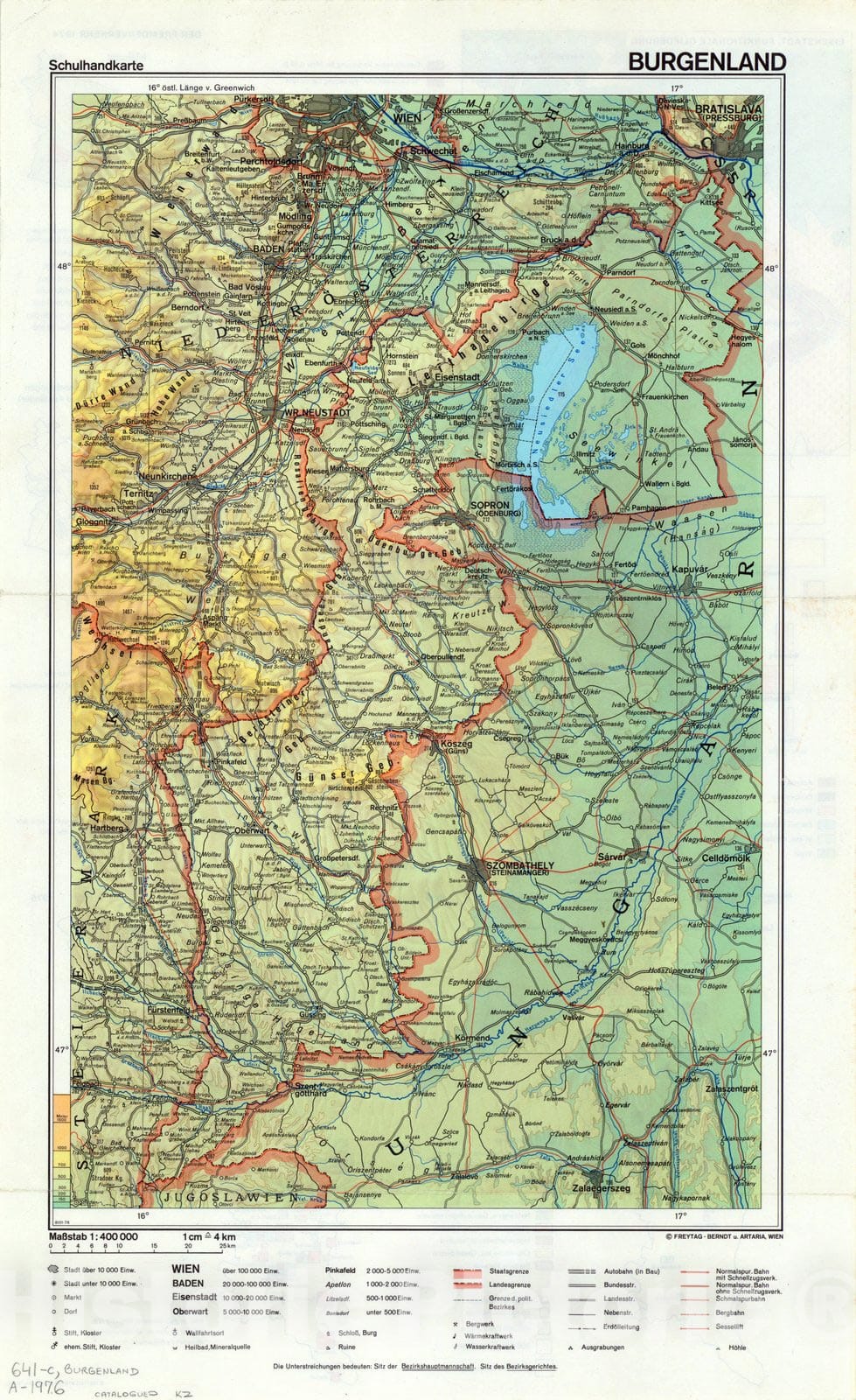 • .Map : Burgenland, Austria 1976 2, Schulhandkarte Burgenland, Antique Vintage Reproduction