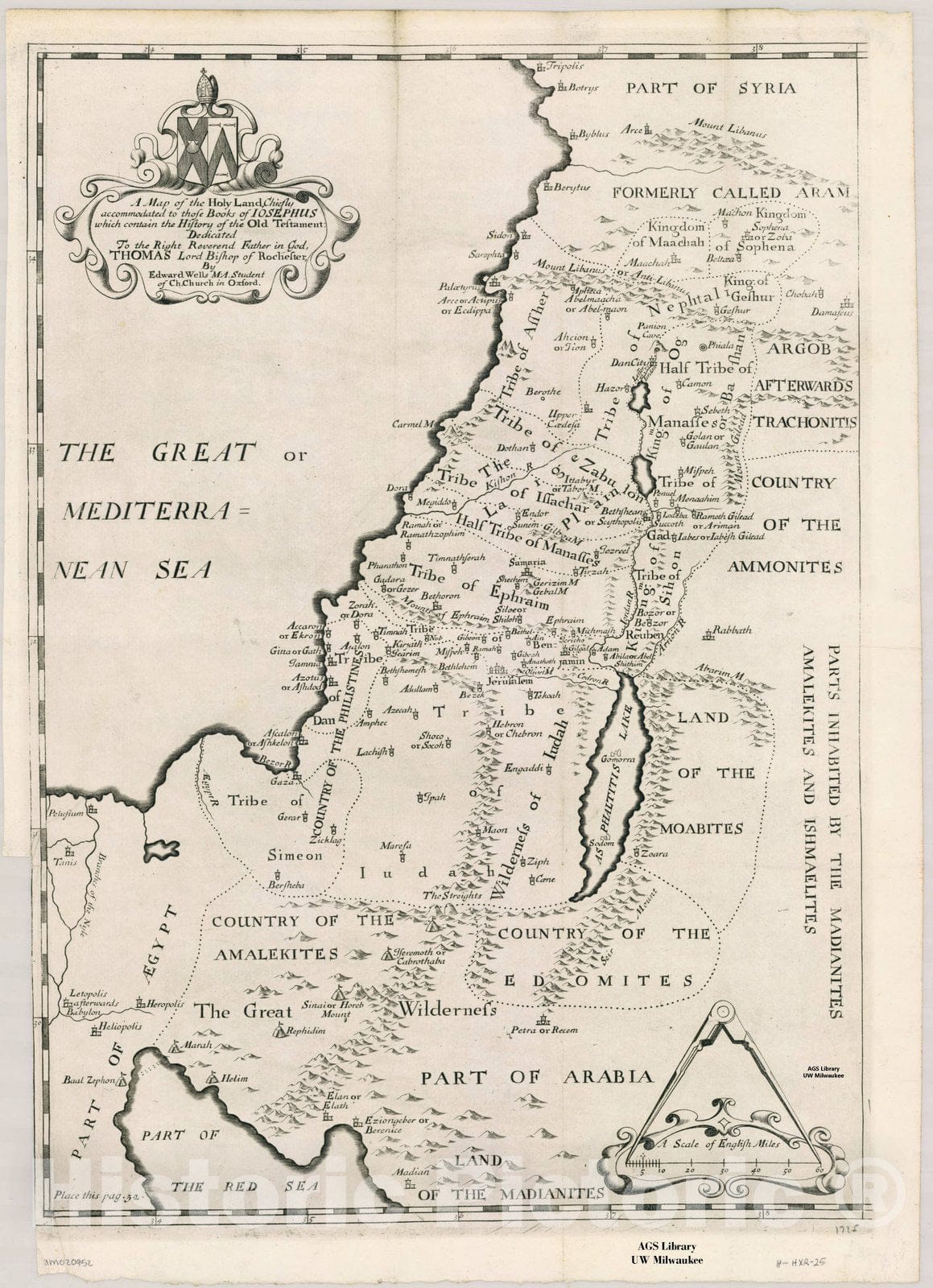 A map of the Holy Land : chiefly accommodated to those books of Iosephus which contain the history of the Old Testament / dedicated to the Right Reverend Father in God, Thomas Lord Bishop of Rochester by Edward Wells, M.A. student of Ch. Church in Oxfo