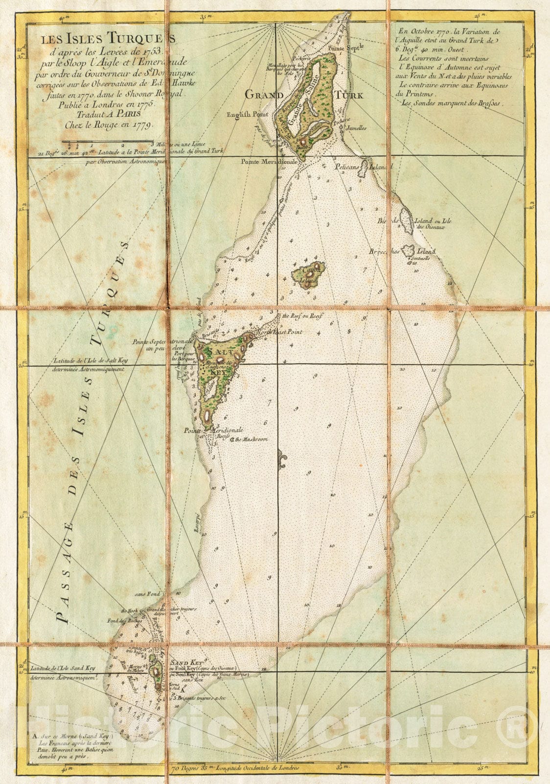 Historical Map, Les Isles Turques d'apreI's les levees de 1753 par le sloop l'Aigle et l'Emeraude par ordre du Gouverneur de St. Domingue, Vintage Wall Art