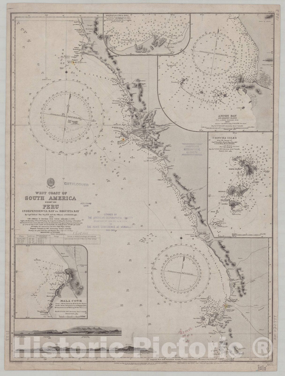Map : Peru coast 1915, West coast of South America, sheet XIV, Peru, Independencia Bay to Begueta Bay , Antique Vintage Reproduction