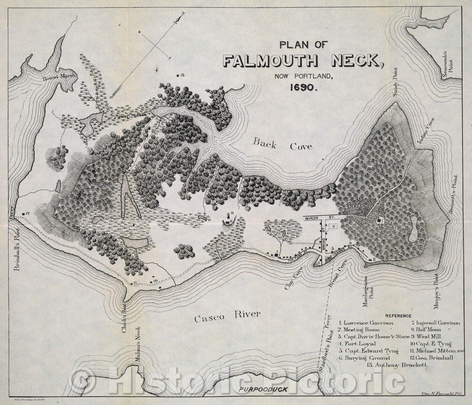 Historic Map : The Siege and Capture of Fort Loyall : Destruction of Falmouth, May 20, 1690 (o.s.), a paper read before the Maine Genealogical Society, 1690 , Vintage Wall Art