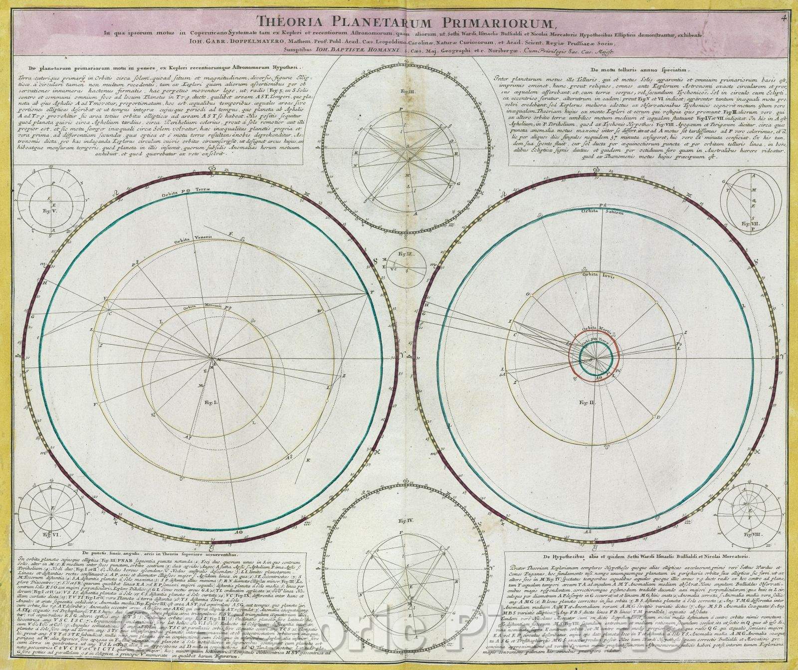 • .Historic Map : Theoria Planetarum Primariorum, in qua ipsorum motus in Copernicano Systemate tam ex Kepleri et recentiorum Astronomorum, quam aliorum, ut, Sethi Ward, 1742 , Vintage Wall Art