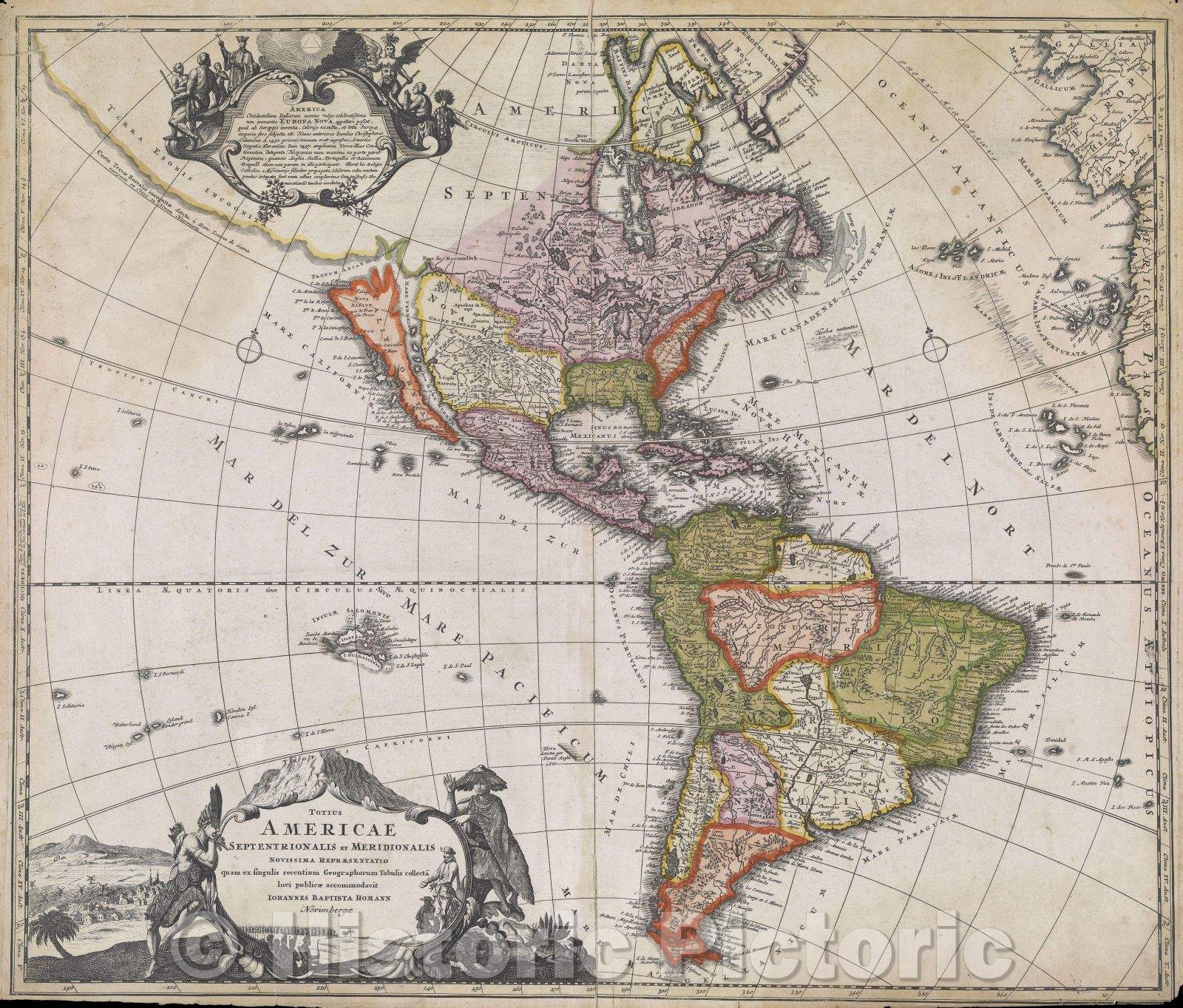 • .Historic Map : Totius Americae Septentrionalis et Meridionalis Novissima Repraesentatio quam ex singulis recentium Geographorum Tabulis collecta luci publicae, 1716 , Vintage Wall Art
