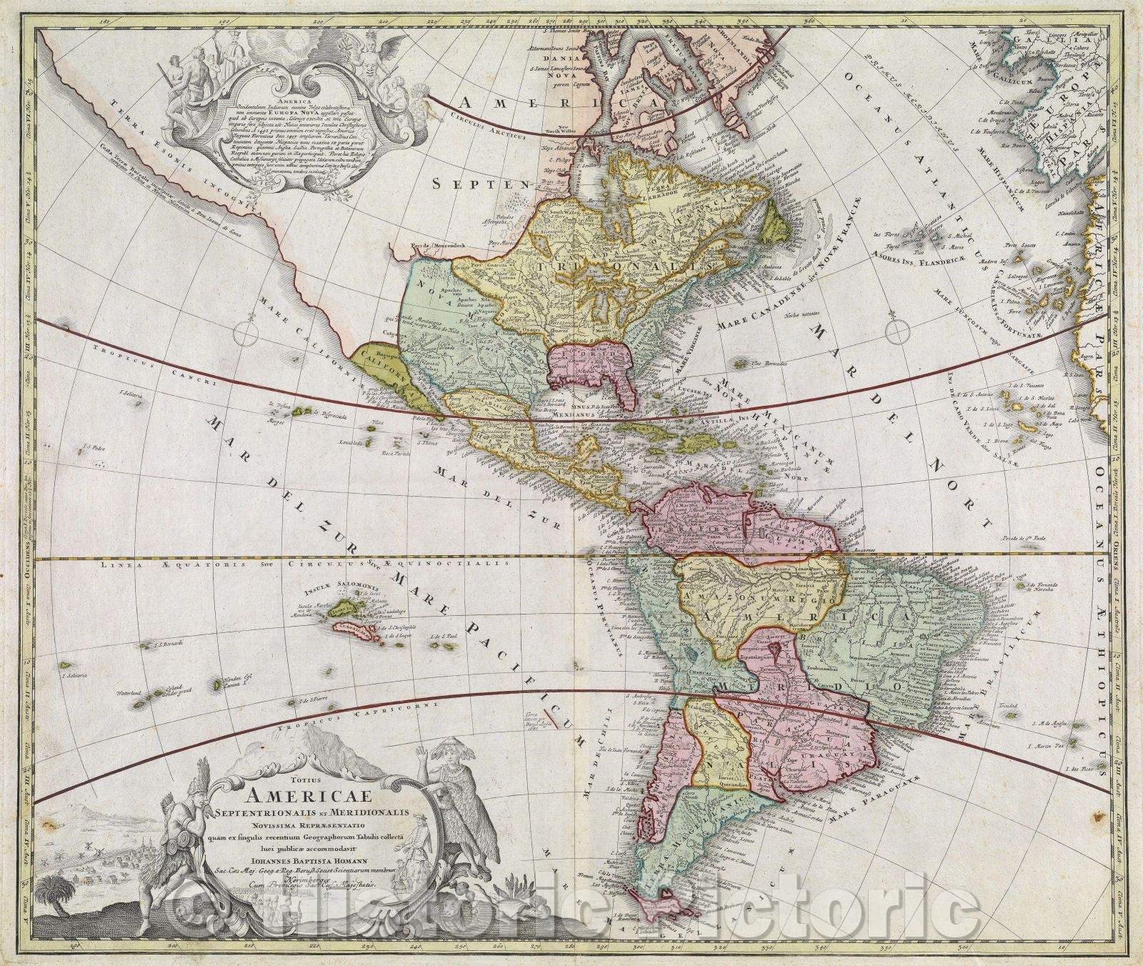 Historic Map : Totius Americae Septentrionalis et Meridionalis Novissima Repraesentatio quam ex Singulis Recentium Geographorum, 1710 , Vintage Wall Art