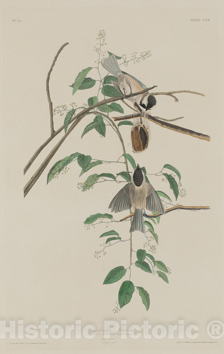 Audubon, Birds of America, Black-capped Titmouse, 1848 : Art Print