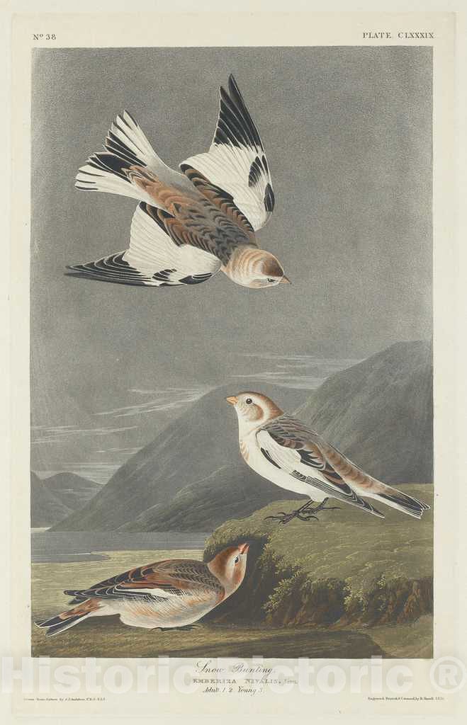 Audubon, Birds of America, Snow Bunting, 1848 : Art Print