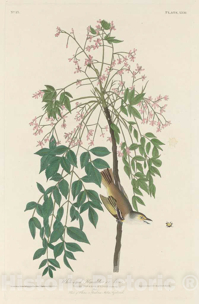 Audubon, Birds of America, White-eyed Fly Catcher, 1848 : Art Print