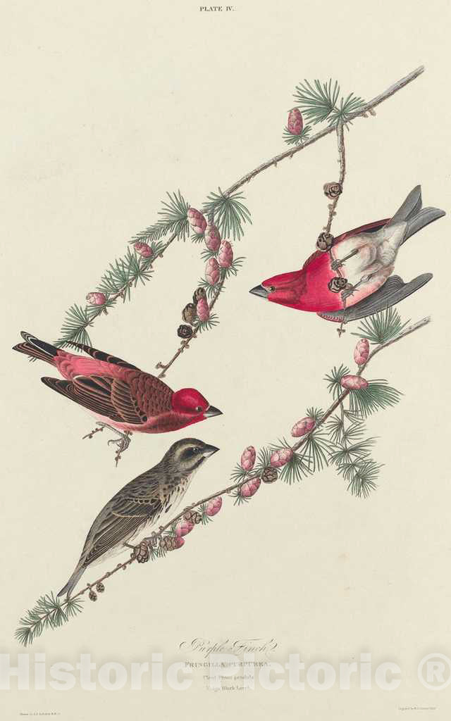 Audubon, Birds of America, Purple Finch, 1848 : Art Print