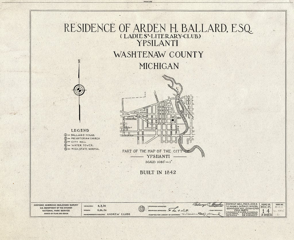 Blueprint 0. Cover Sheet - Arden H. Ballard House, 218 North Washington Street, Ypsilanti, Washtenaw County, MI