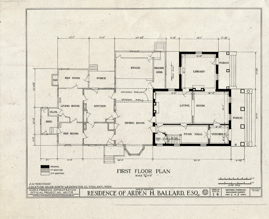 Blueprint 1. First Floor Plan - Arden H. Ballard House, 218 North Washington Street, Ypsilanti, Washtenaw County, MI