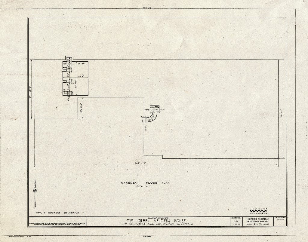 Blueprint 1. Basement Floor Plan - Green-Meldrim House, 327 Bull Street, Savannah, Chatham County, GA