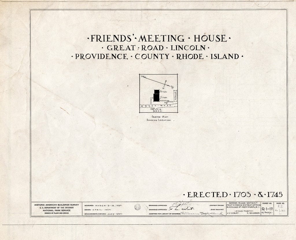Blueprint 0. Cover Sheet - Friends Meetinghouse, Great Road, Saylesville, Providence County, RI